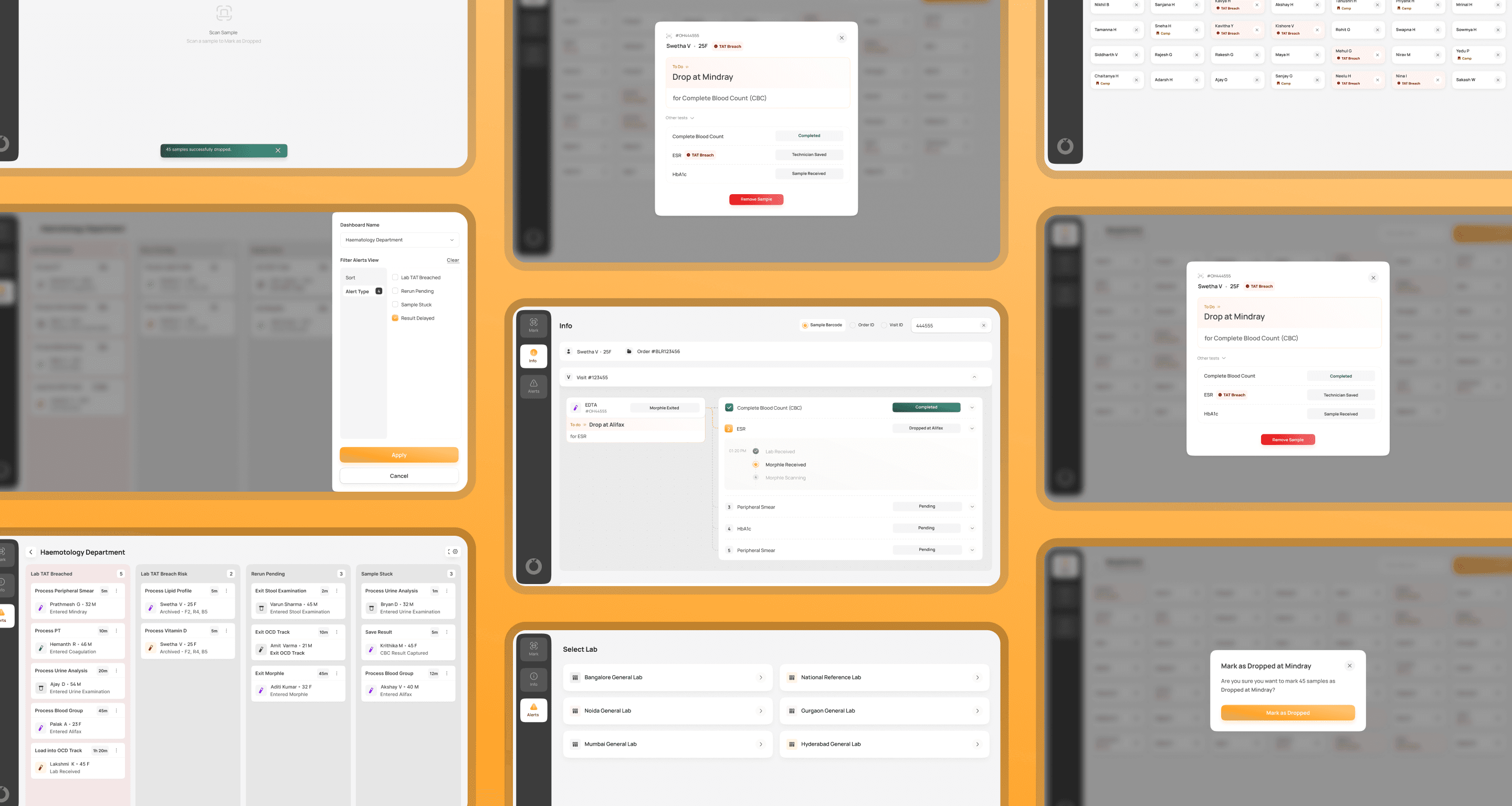 Lab technicians faced processing delays, TAT breaches, and misplaced samples due to outdated tracking software and lack of real-time alerts. Without a centralized system, inefficiencies led to reruns, bottlenecks, and slower patient results.